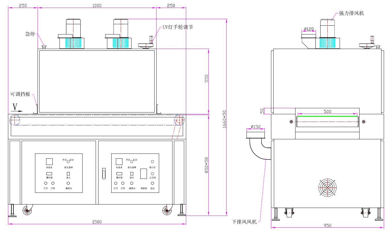 快門氣動UV燈罩雙汞燈固化機上下雙排風輸送式UV光固化設備