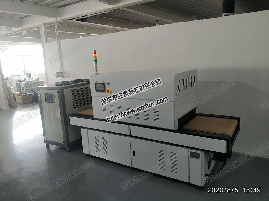 UV固化設備,通常為8-10KW,具有很大的噪音,灰塵和功耗。 盡管這似乎是一種非常有效的固化方法,但由于相機的固化成分很少,因此實際利用率非常低。 另外,照相機要求高度清潔,并且溫度也需要低溫。 這種固化方法顯然是不合適的。針對此問題,三昆技術提出的解決方案是使用高效的